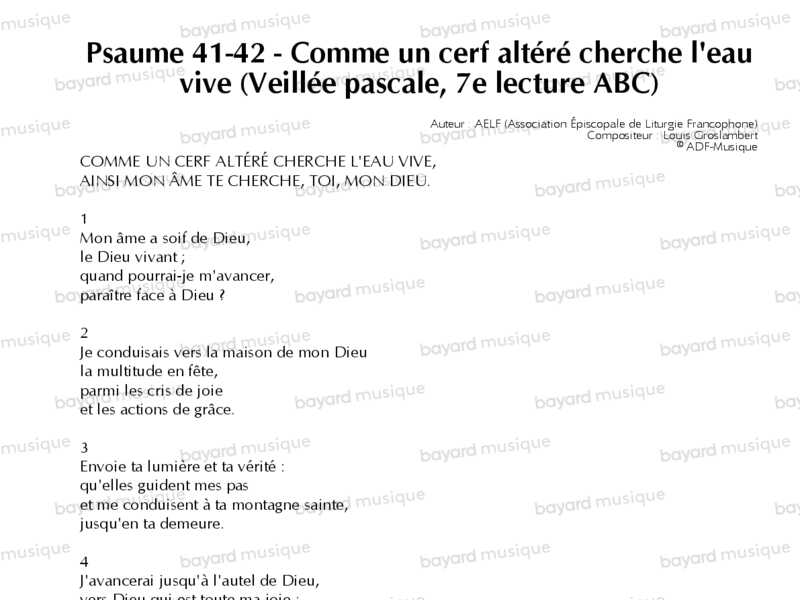 Psaume 41 - Comme un cerf altéré cherche l'eau vive, ainsi mon âme te cherche, toi mon Dieu (Veillée pascale, après la 7e lecture, années A, B et C)