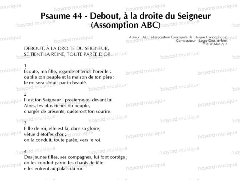 Psaume 44 - Debout, à la droite du Seigneur, se tient la reine, toute parée d'or (15 août, Assomption, messe du jour, années A, B et C)