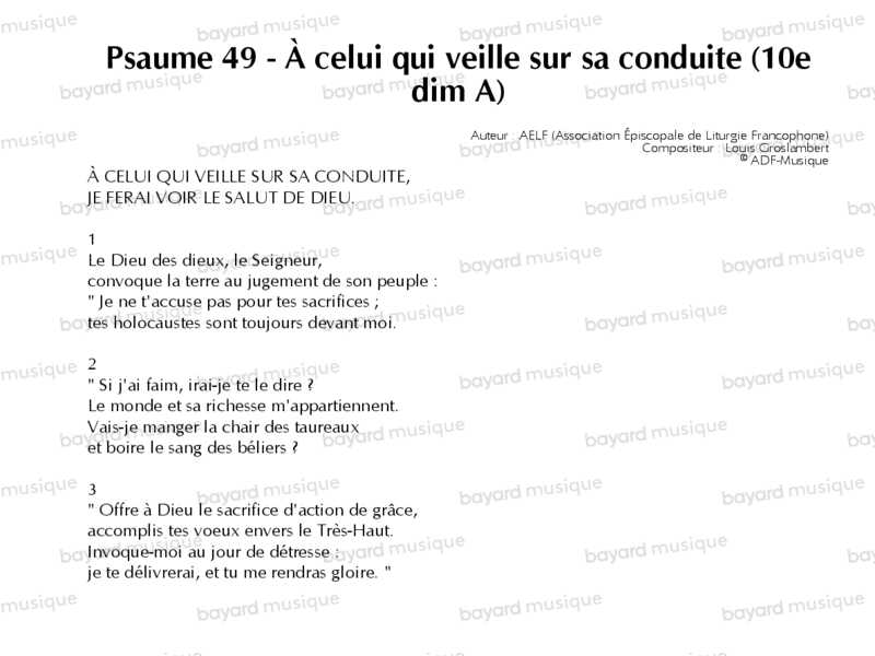 Psaume 49 - À celui qui veille sur sa conduite, je ferai voir le salut de Dieu (10e dimanche du temps ordinaire, année A)