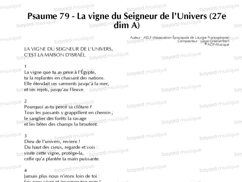 Psaume 79 - La vigne du Seigneur de l'Univers, c'est la maison d'Israël (27e dimanche du temps ordinaire, année A)