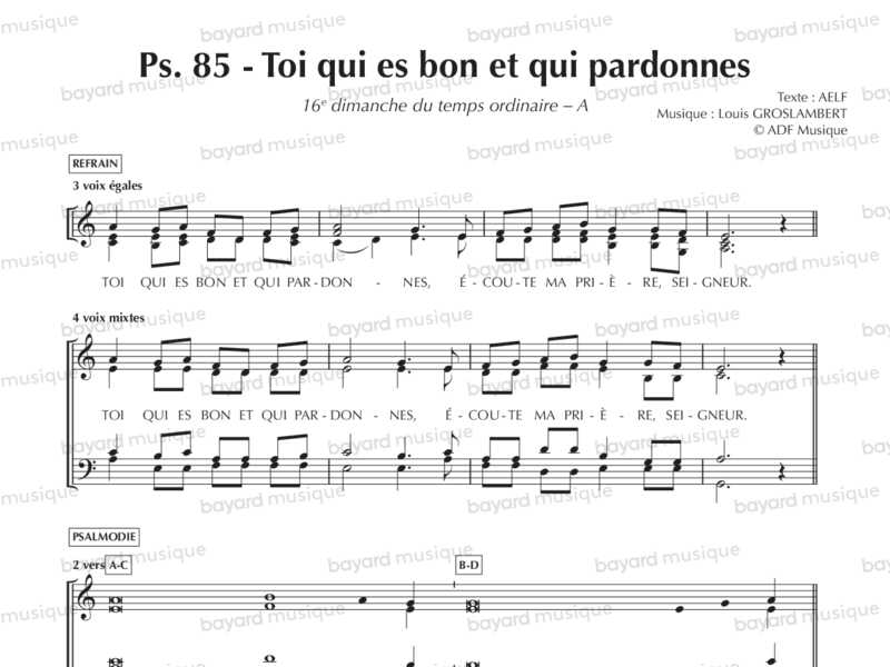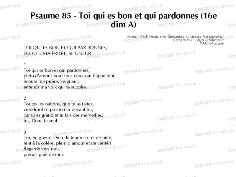 Psaume 85 - Toi qui es bon et qui pardonnes, écoute ma prière, Seigneur (16e dimanche du temps ordinaire, année A)