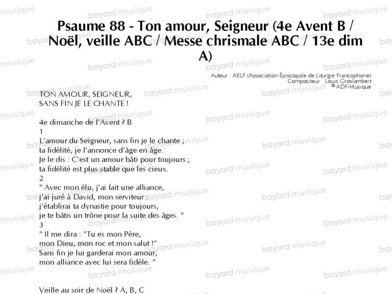 Psaume 88 - Ton amour Seigneur, sans fin je le chante ! (Noël, messe de la veille au soir, années A, B et C)