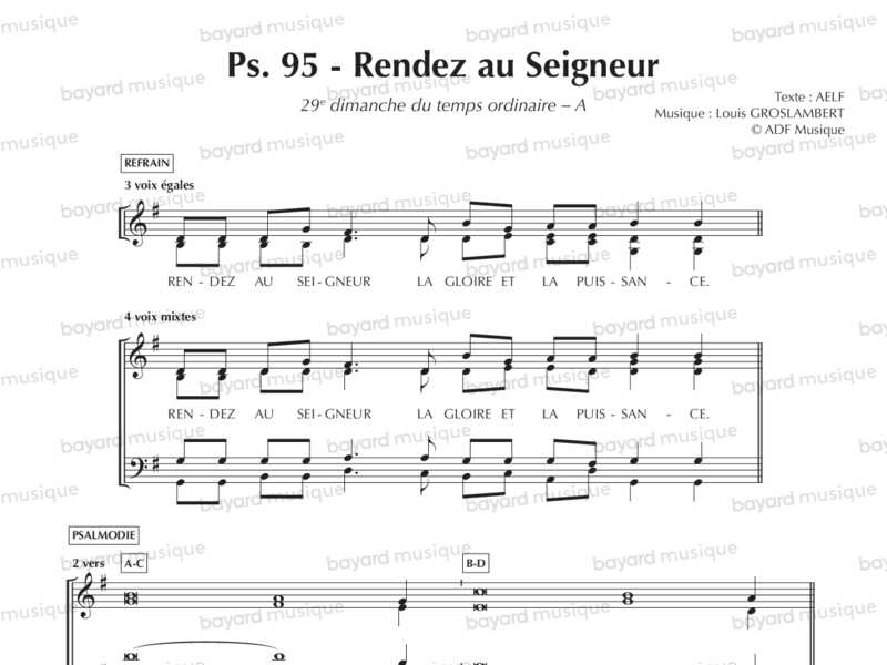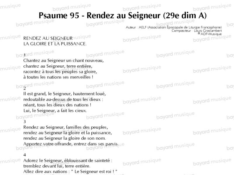 Psaume 95 - Rendez au Seigneur, la gloire et la puissance (29e dimanche du temps ordinaire, année A)