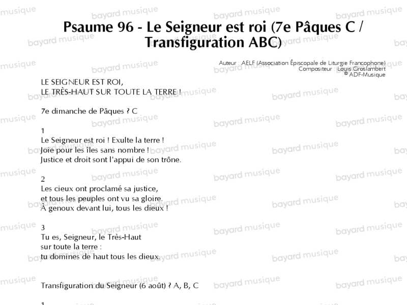 27. Psaume 96 - Le Seigneur est roi, le Très-Haut sur toute la Terre ! (6 août, transfiguration du Seigneur, années A, B et C)