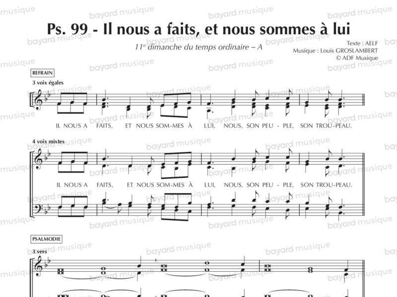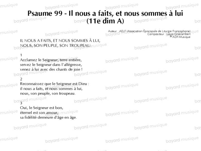 Psaume 99 - Il nous a faits, et nous sommes à lui, nous son peuple, son troupeau (11e dimanche du temps ordinaire, année A)