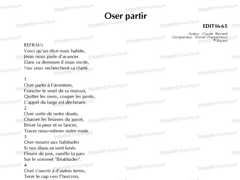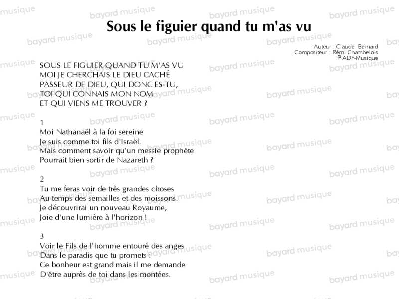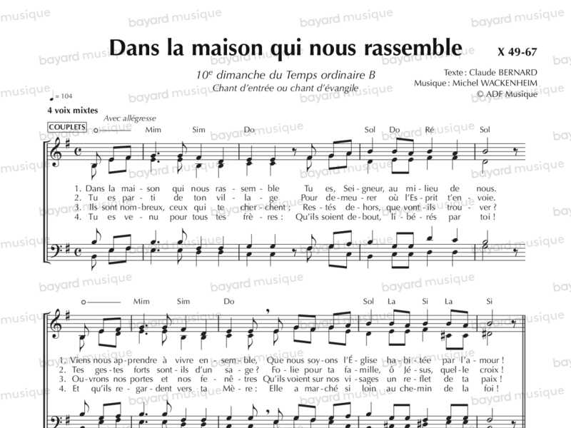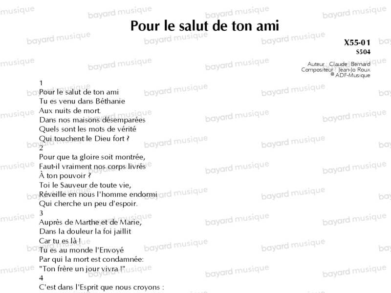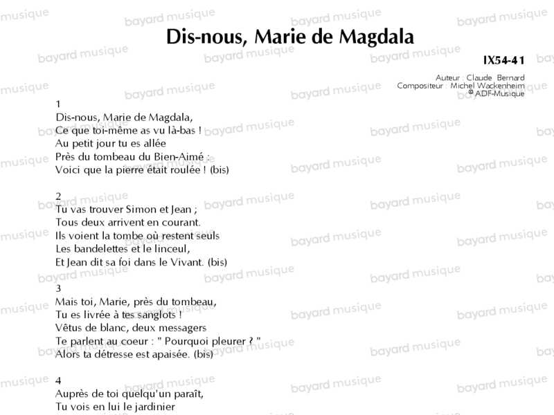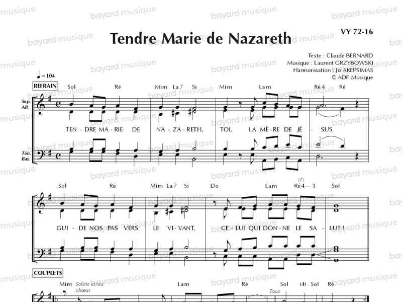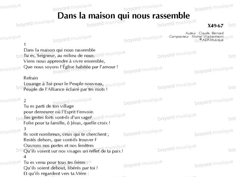 Interprété par l'ensemble vocal l'Alliance, le petit chœur ADF, Stéphane Audoin, Béatrice Gobin et Marie-Louise Valentin.