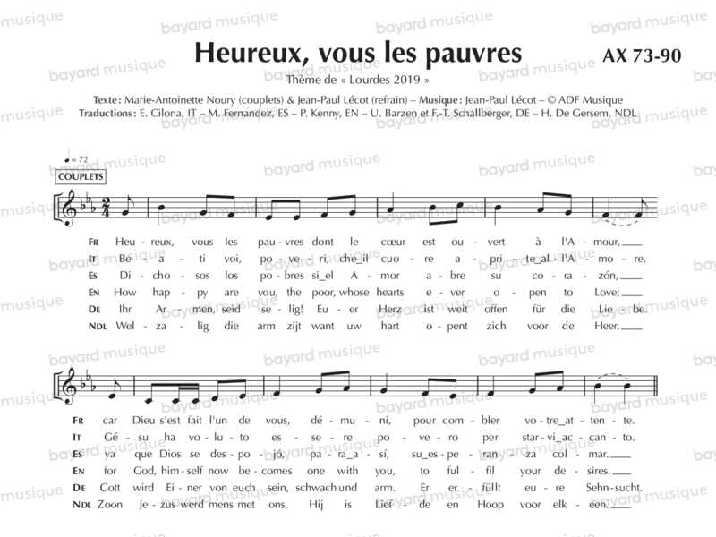 Lourdes : Chants 2019 “Heureux, vous les pauvres“