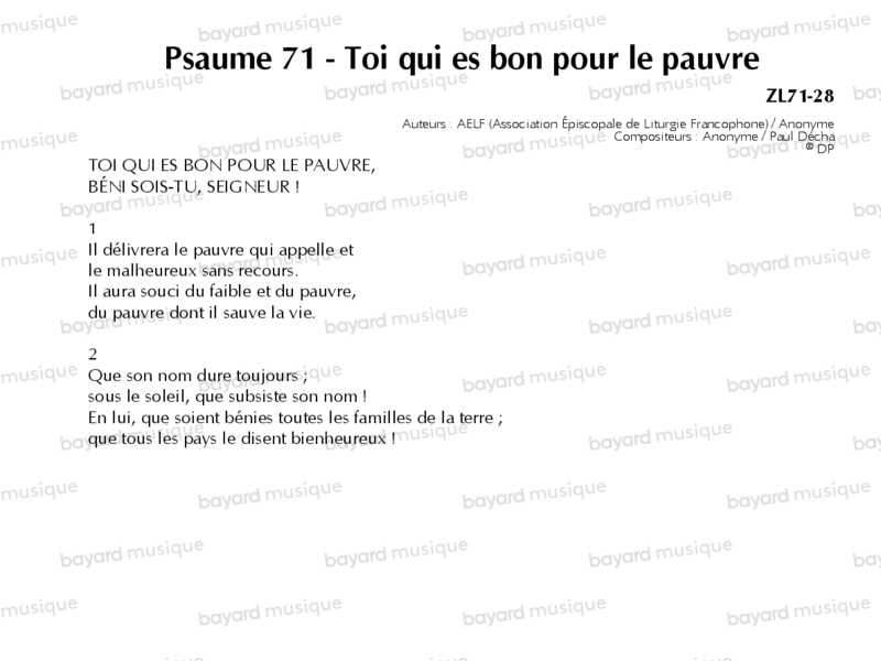 Psaume 71 - Toi qui es bon pour le pauvre