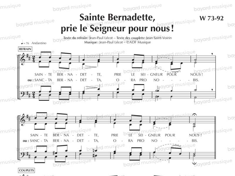 Interprété par le quatuor vocal du sanctuaire de Lourdes, Jean-Paul Lécot et Alain Chérel, direction Frédéric Dupuy.