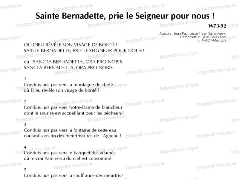 Interprété par le quatuor vocal du sanctuaire de Lourdes et Jean-Paul Lécot, direction Frédéric Dupuy. ATTENTION ! Ce chant est court.