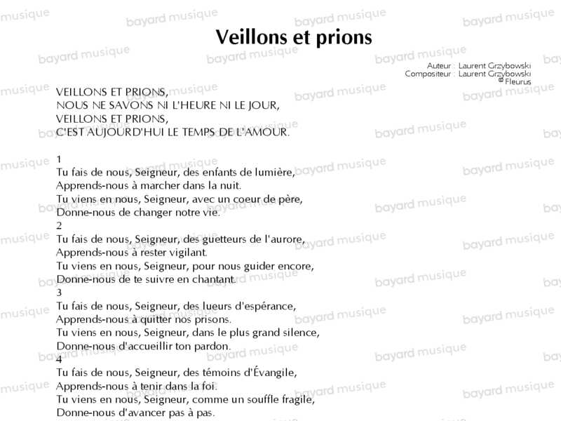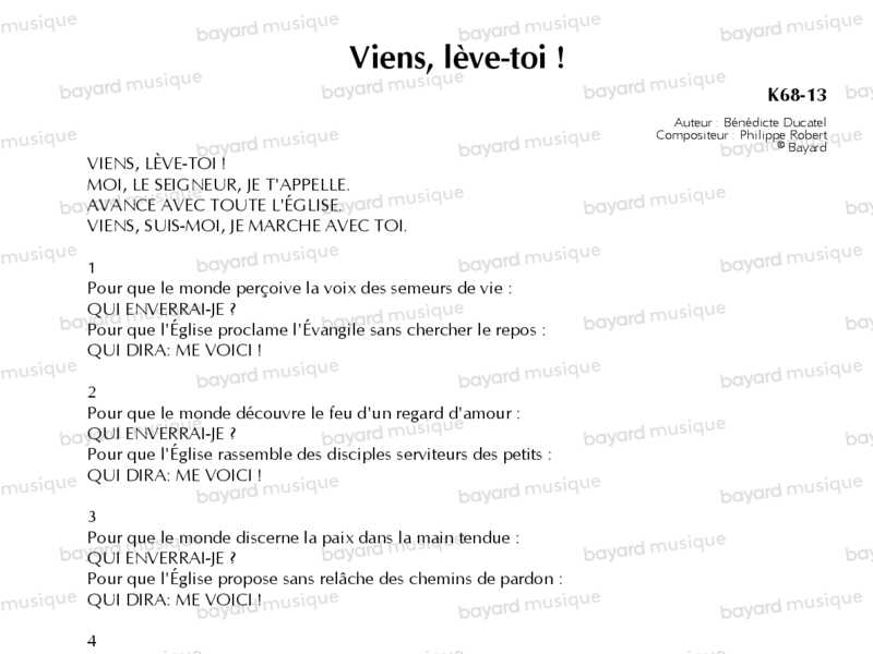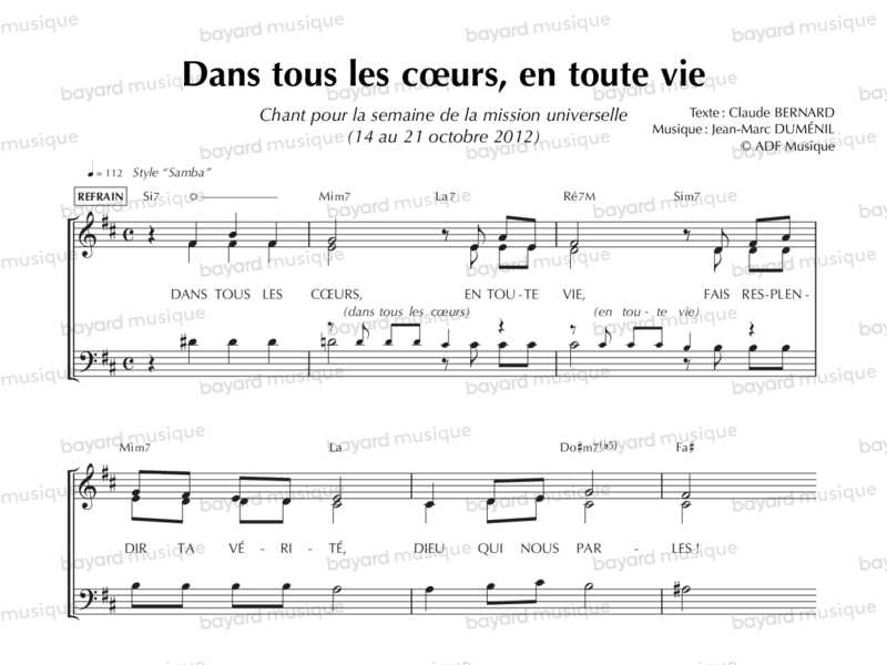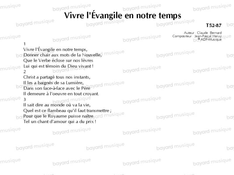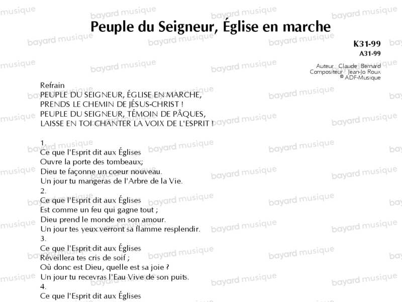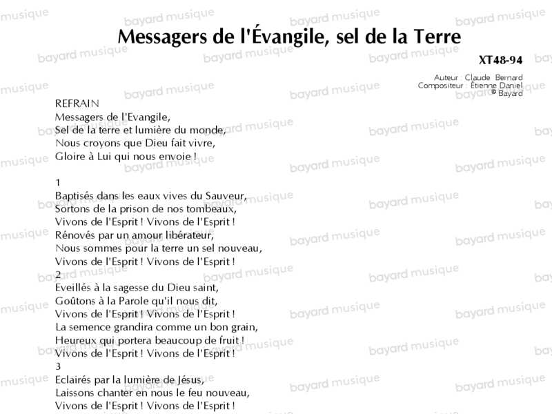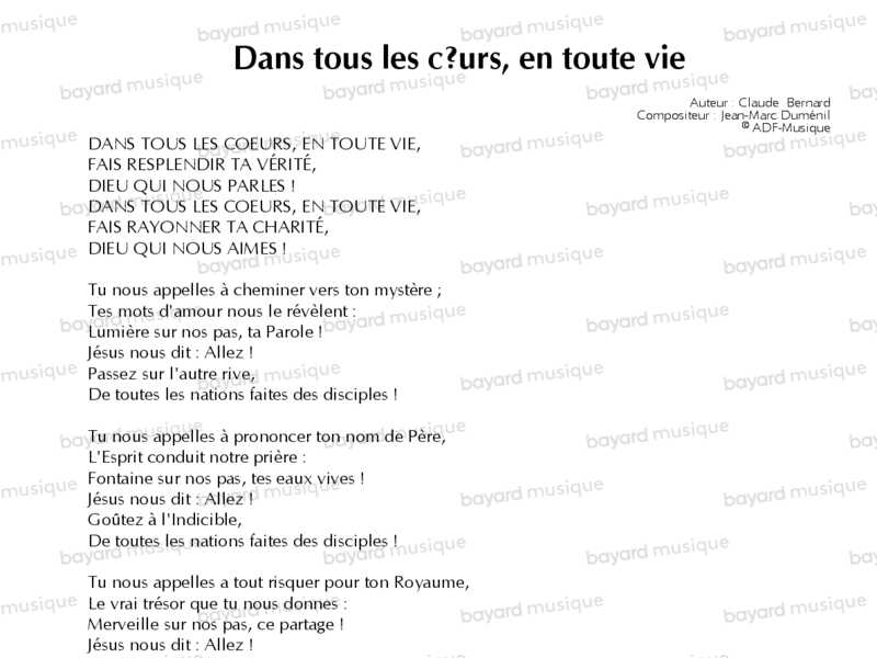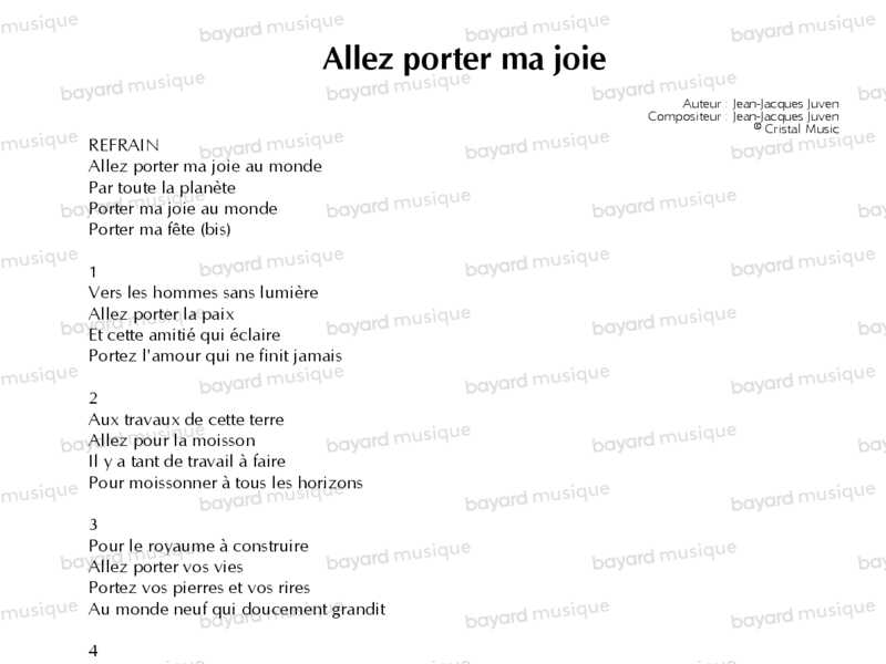 Interprété par Claire Chataigner, Jean-Jacques Juven et le Mouvement Eucharistique des Jeunes.