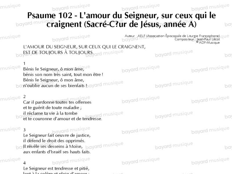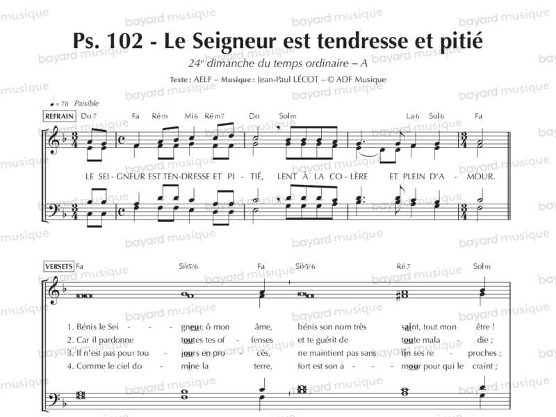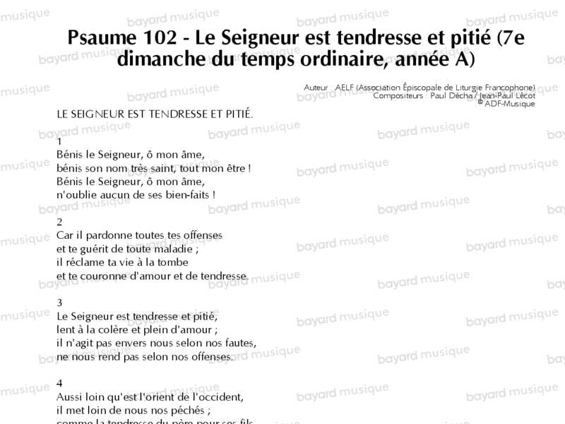 Psaume 102 - Le Seigneur est tendresse et pitié (24e dimanche du temps ordinaire, année A)