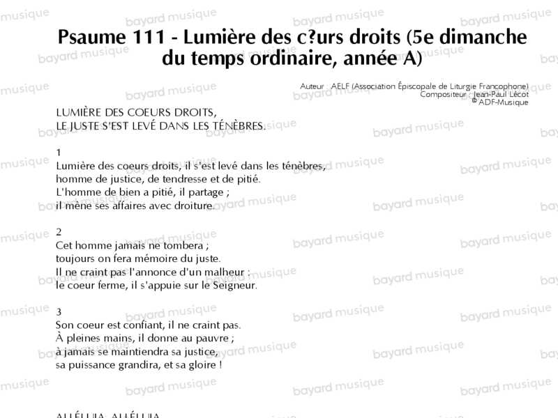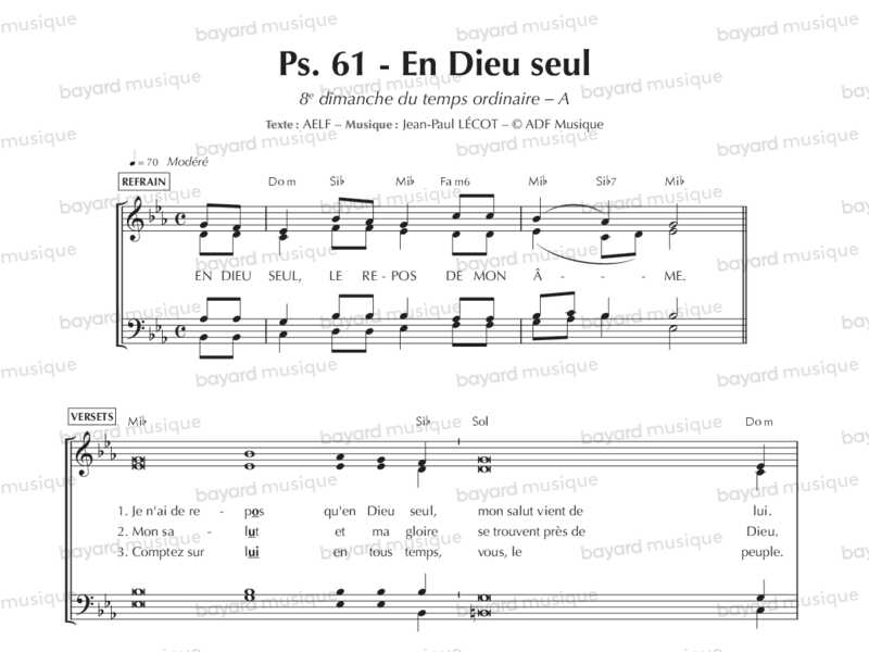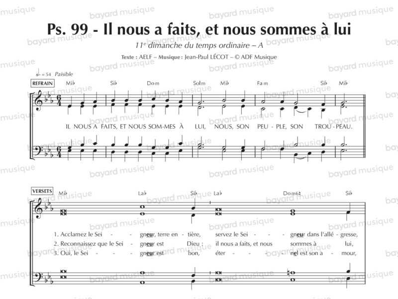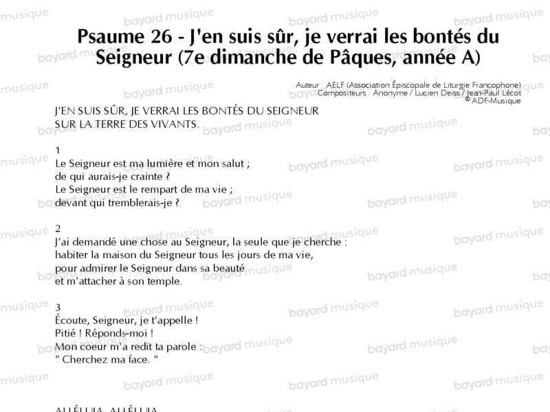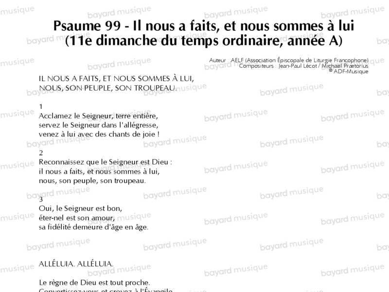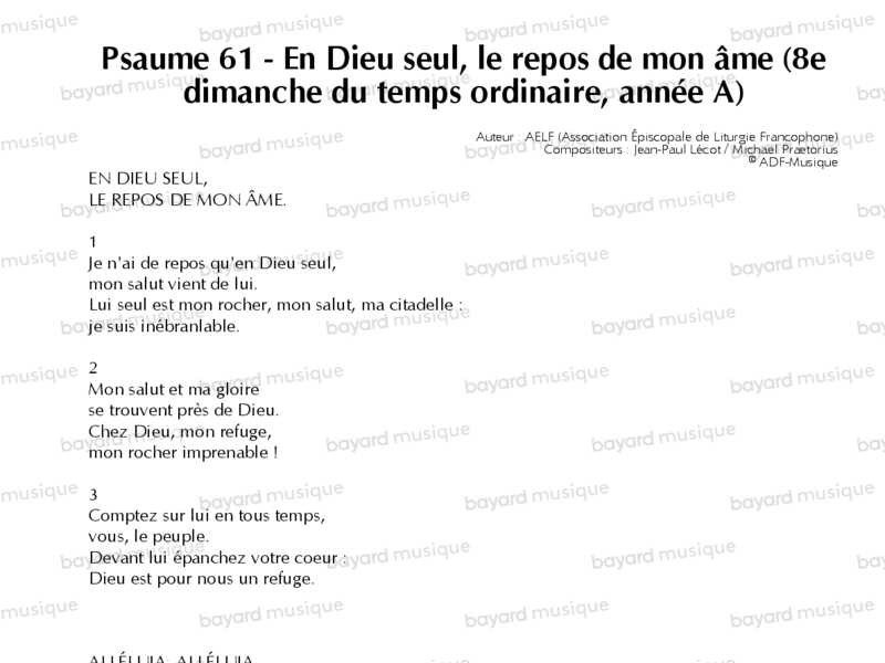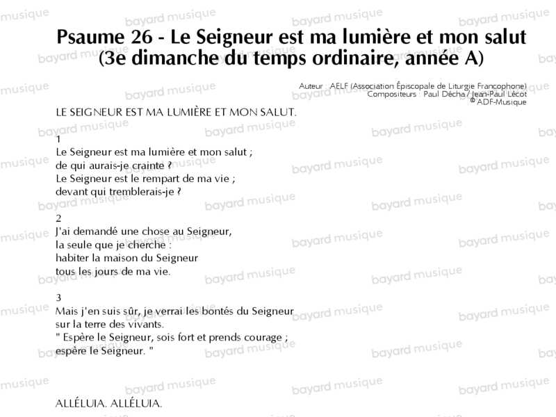 L'ensemble des psaumes et des acclamations de l'Évangile pour les dimanches et fêtes de l'année A, mis en musique sous la direction de Jean-Paul Lécot.