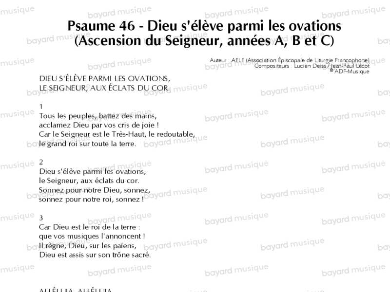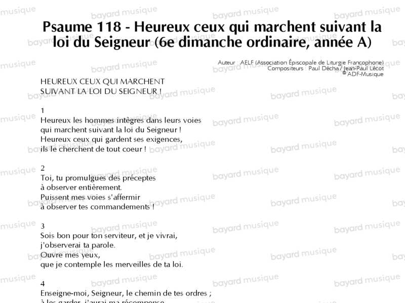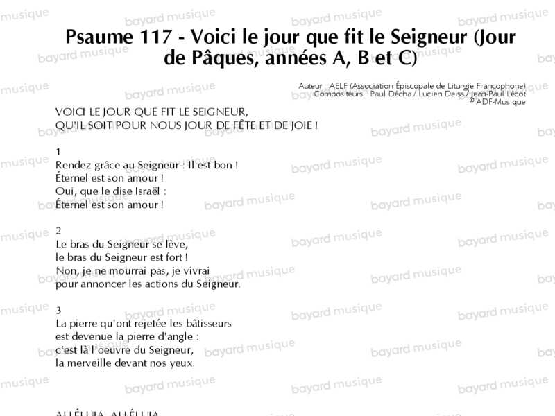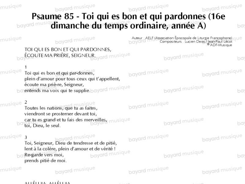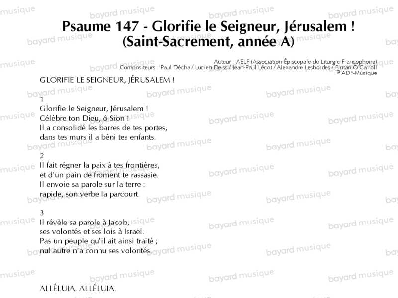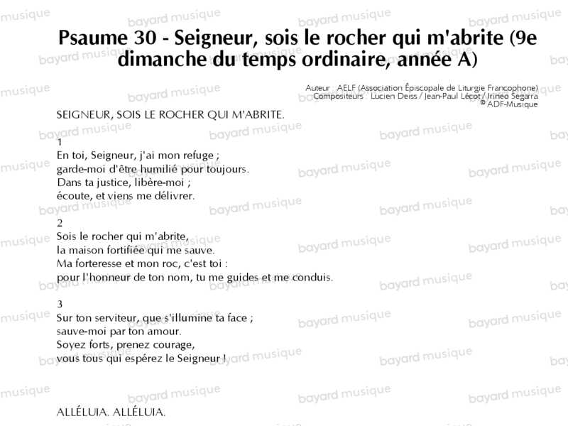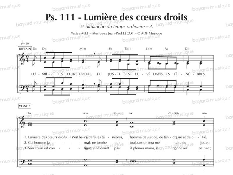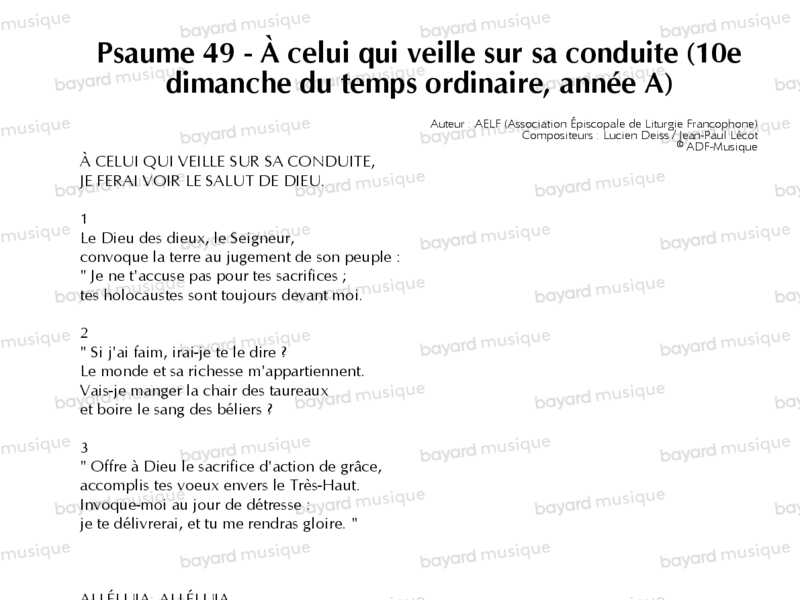 L'ensemble des psaumes et des acclamations de l'Évangile pour les dimanches et fêtes de l'année A, mis en musique sous la direction de Jean-Paul Lécot.