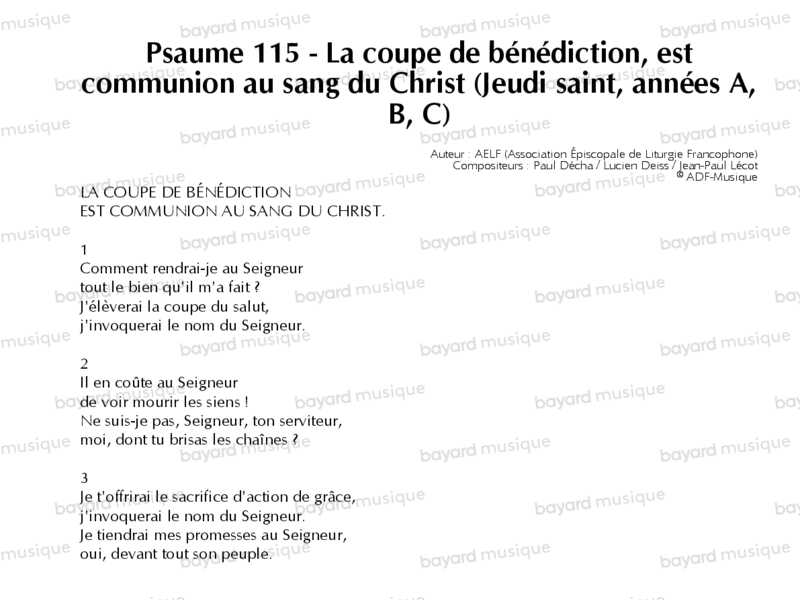 23. Psaume 115 - La coupe de bénédiction (Jeudi saint, années A, B et C)