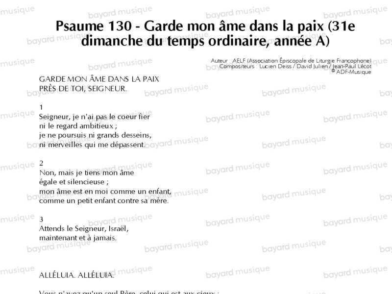 75. Psaume 130 - Garde mon âme dans la paix (31e dimanche du temps ordinaire, année A)