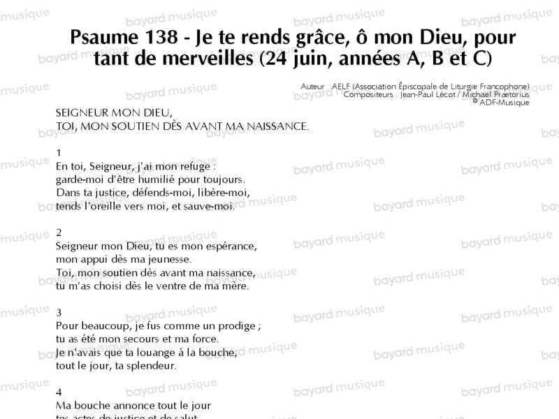 64. Psaume 137 - Seigneur, éternel est ton amour (21e dimanche du temps ordinaire, année A)