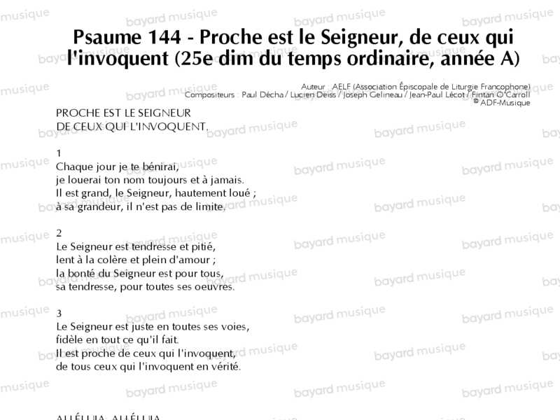 Psaume 144 - Proche est le Seigneur (25e dimanche du temps ordinaire, année A)