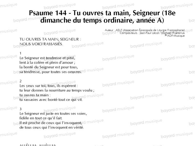 61. Psaume 144 - Tu ouvres ta main, Seigneur (18e dimanche du temps ordinaire, année A)