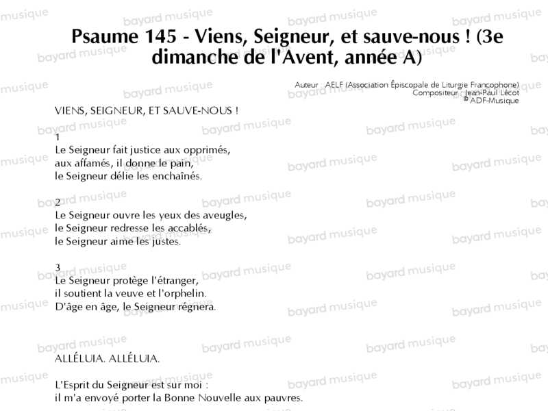 Psaume 145 - Viens, Seigneur, et sauve-nous ! (3e dimanche de l'Avent, année A)