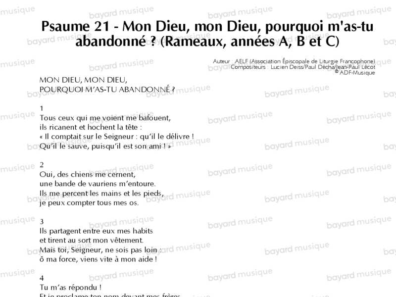 21. Psaume 21 - Mon Dieu, mon Dieu, pourquoi m'as-tu abandonné ? (Dimanche des Rameaux, années A, B et C)
