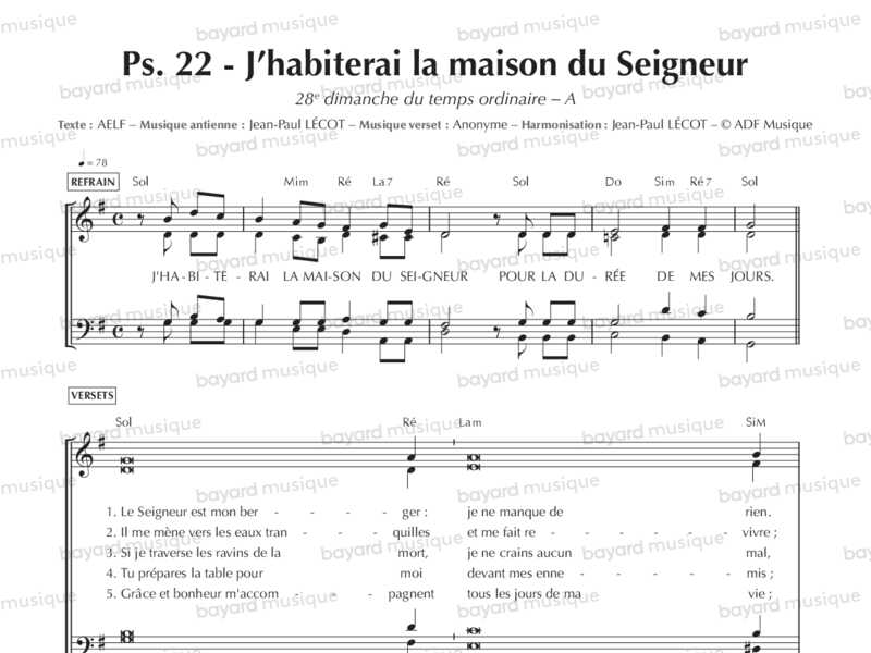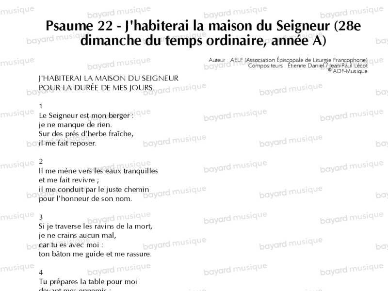 Psaume 22 - J'habiterai la maison du Seigneur (28e dimanche du temps ordinaire, année A)