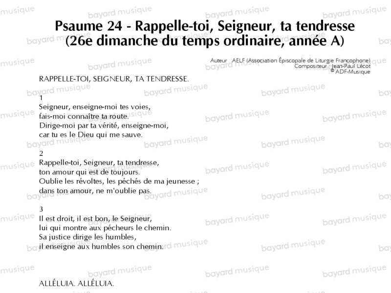 Psaume 24 - Rappelle-toi, Seigneur, ta tendresse (26e dimanche du temps ordinaire, année A)
