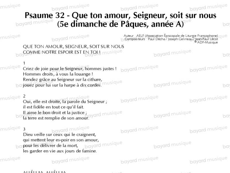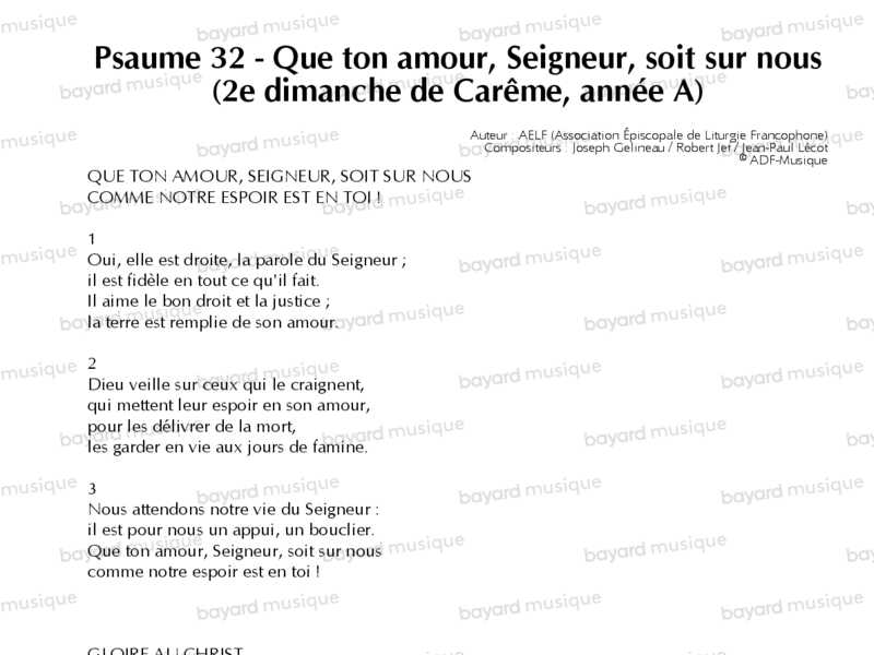 Psaume 32 - Que ton amour, Seigneur, soit sur nous (2e dimanche de Carême, année A)