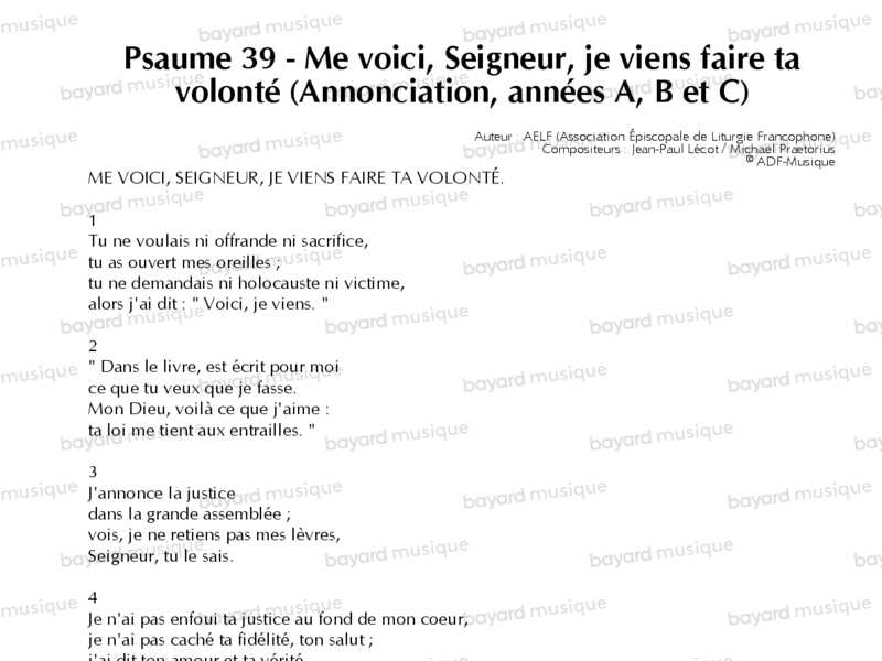 Psaume 39 - Me voici, Seigneur (Annonciation du Seigneur, années A, B et C)