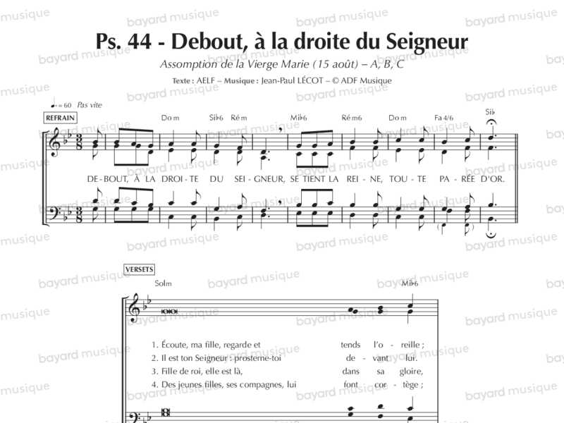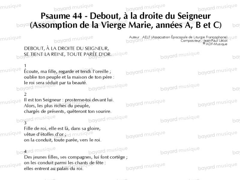 Psaume 44 - Debout, à la droite du Seigneur (Assomption de la Vierge Marie, 15 août, années A, B et C)