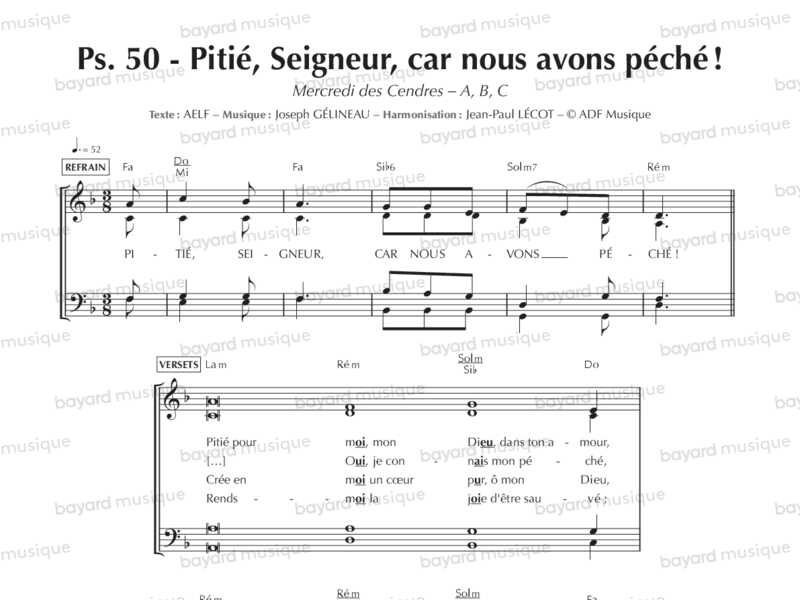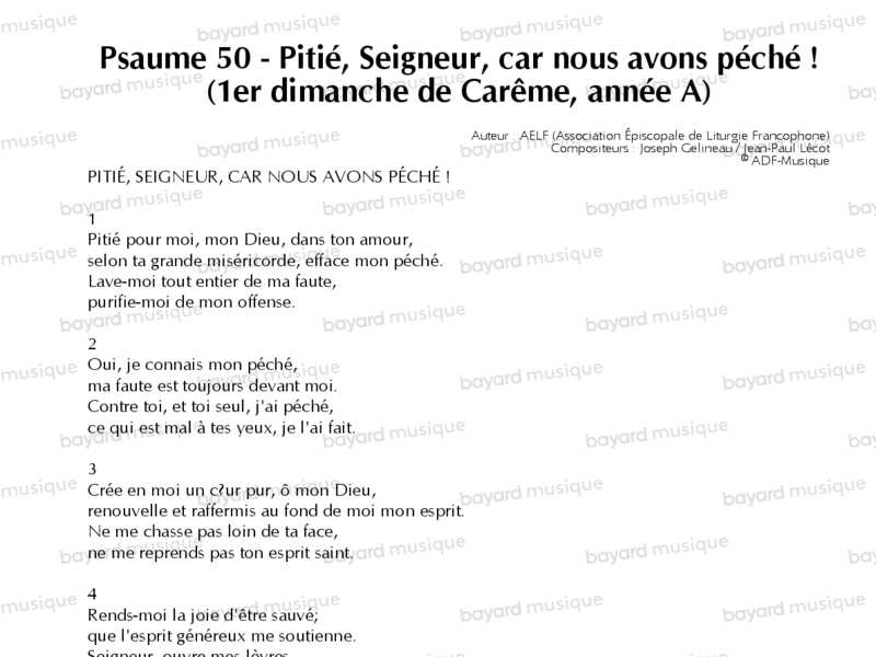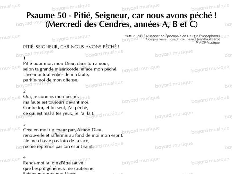 Psaume 50 - Pitié, Seigneur, car nous avons péché ! (Mercredi des Cendres, années A, B et C)