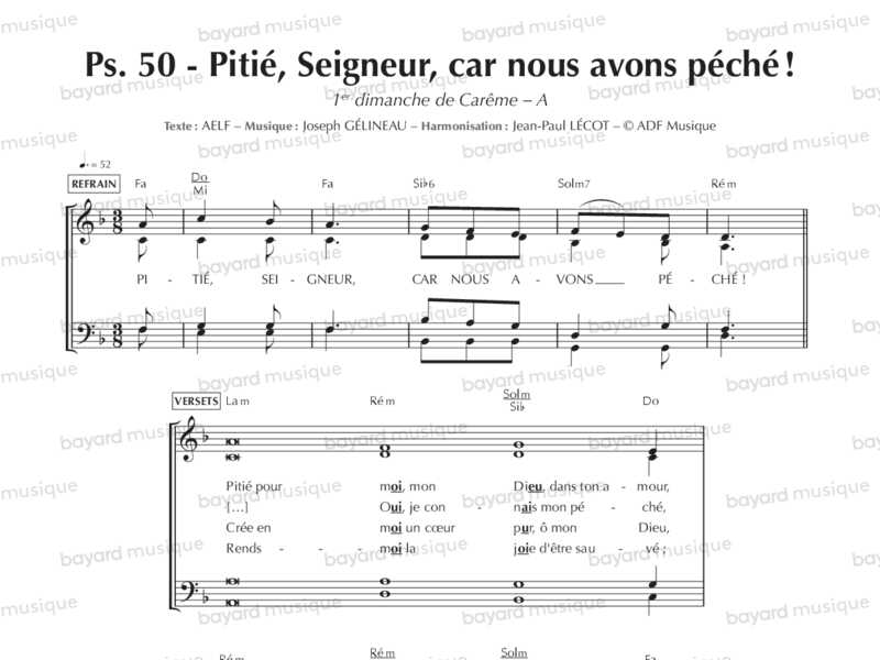 Psaume 50 - Pitié, Seigneur, car nous avons péché ! (1er dimanche de Carême, année A)