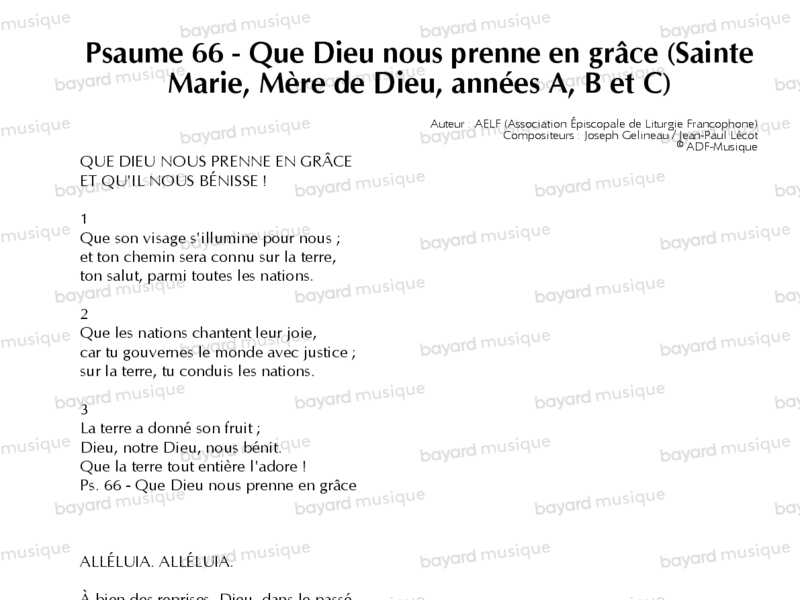 Psaume 66 - Que Dieu nous prenne en grâce (Sainte Marie, Mère de Dieu, 1er janvier, années A, B et C)