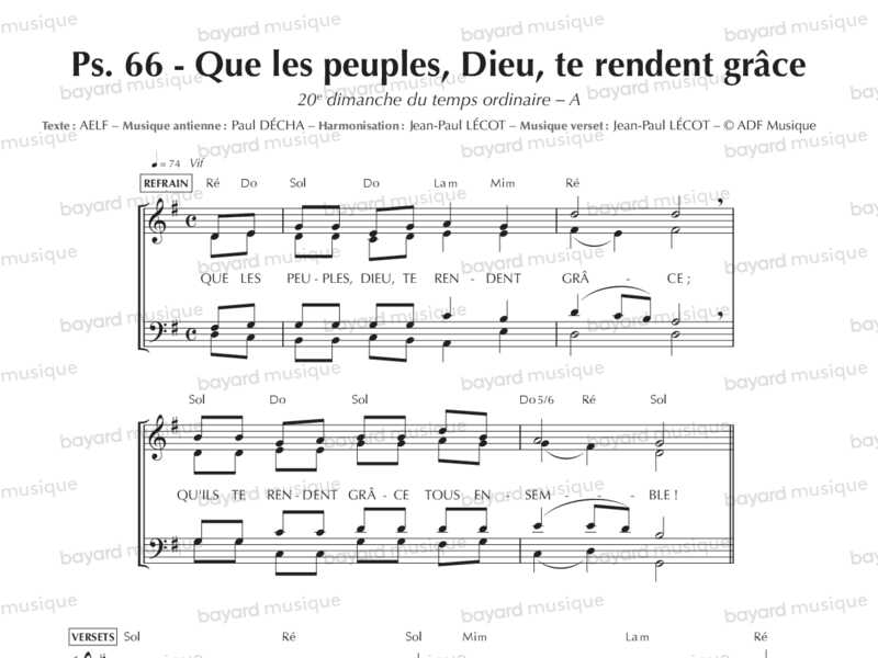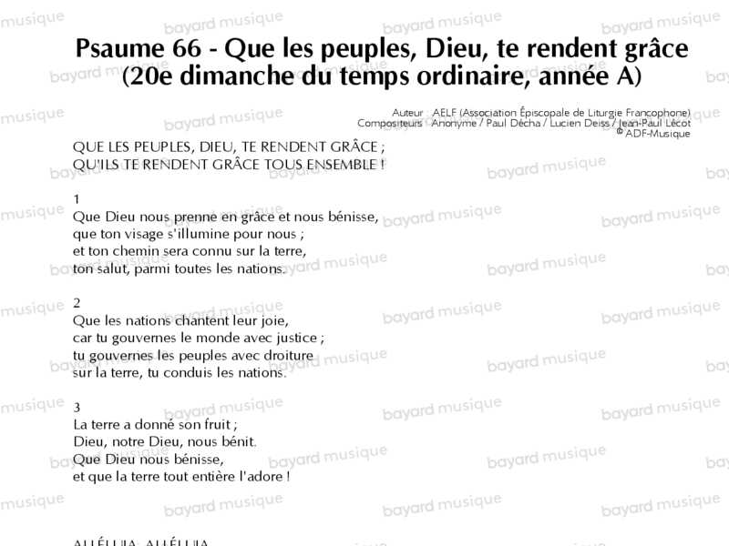 Psaume 66 - Que les peuples, Dieu, te rendent grâce (20e dimanche du temps ordinaire, année A)