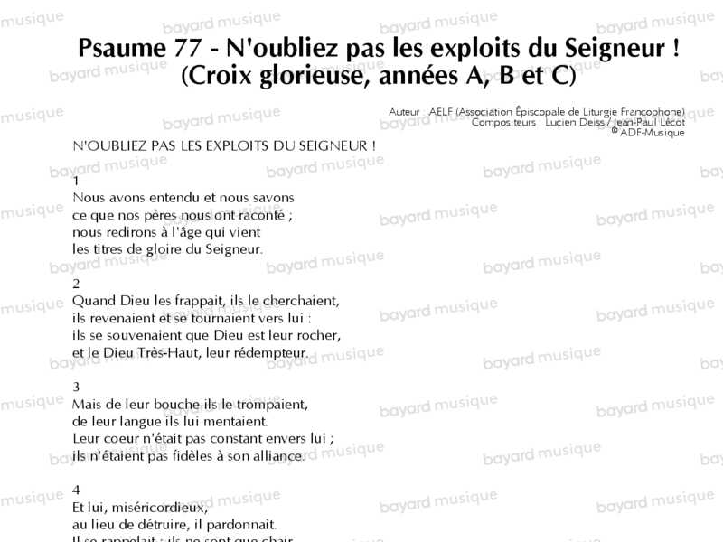 Psaume 77 - N'oubliez pas les exploits du Seigneur ! (Croix glorieuse, 14 septembre, années A, B et C)