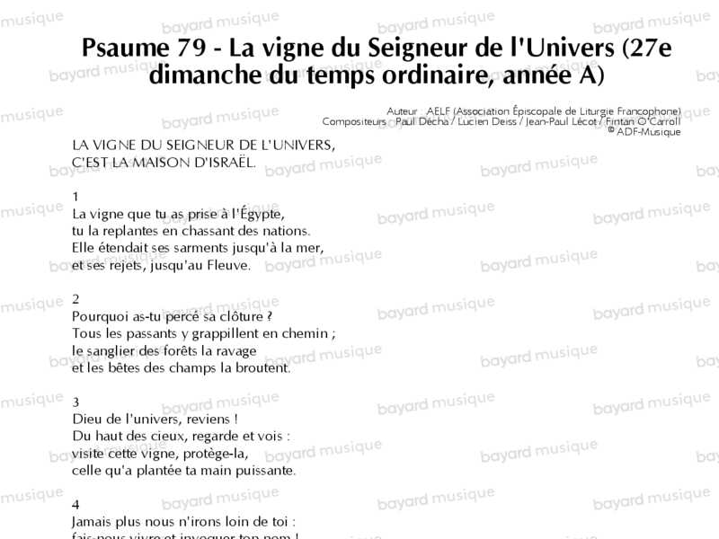 71. Psaume 79 - La vigne du Seigneur de l'univers (27e dimanche du temps ordinaire, année A)