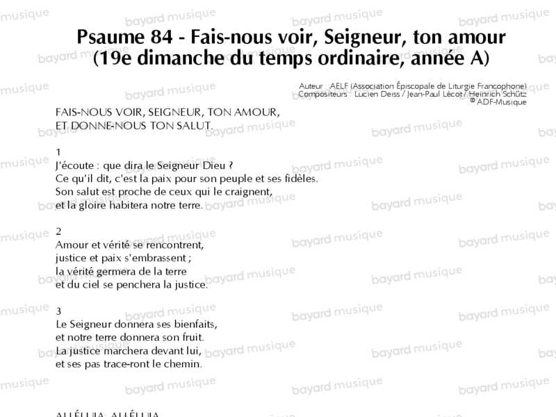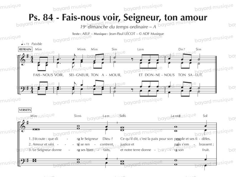 Psaume 84 - Fais-nous voir, Seigneur, ton amour (19e dimanche du temps ordinaire, année A)