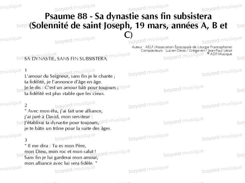 Psaume 88 - Sa dynastie, sans fin subsistera (Solennité de saint Joseph, 19 mars, années A, B et C)