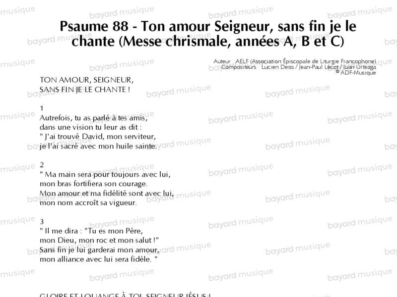 22. Psaume 88 - Ton amour, Seigneur (Messe chrismale, années A, B et C)