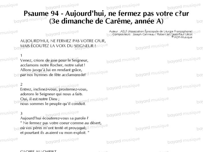 18. Psaume 94 - Aujourd'hui, ne fermez pas votre cœur (3e dimanche de Carême, année A)