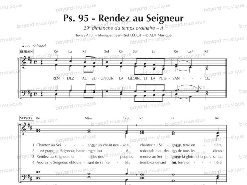 Psaume 95 - Rendez au Seigneur la gloire et la puissance (29e dimanche du temps ordinaire, année A)