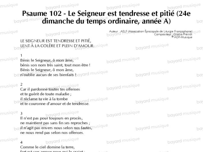 Psaume 102 - Le Seigneur est tendresse et pitié (24e dimanche du temps ordinaire, année A)