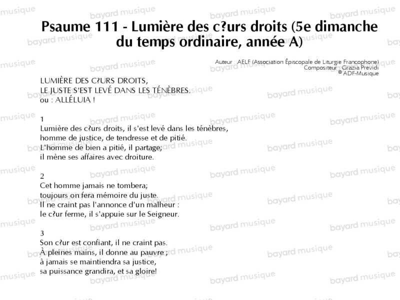 17. Psaume 111 - Lumière des cœurs droits (5e dimanche du temps ordinaire, année A)