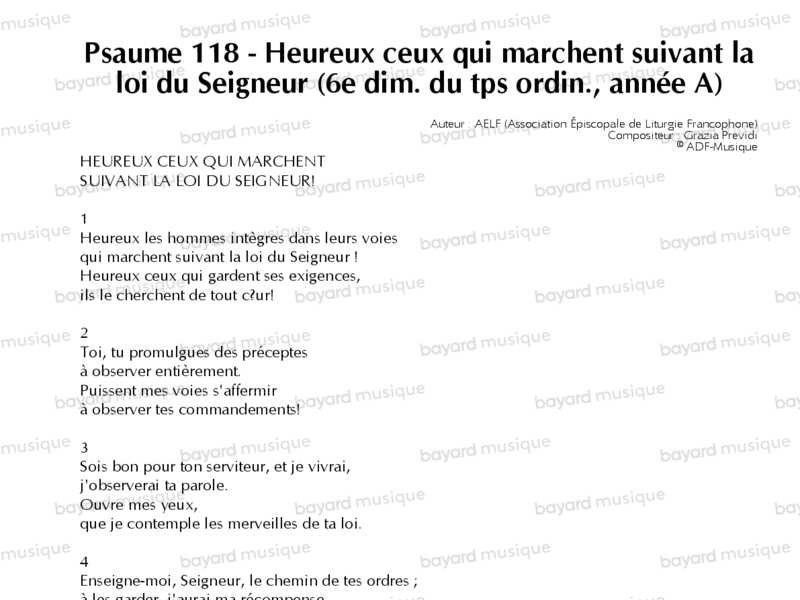 Psaume 118 - Heureux ceux qui marchent suivant la loi du Seigneur (6e dimanche du temps ordinaire, année A)