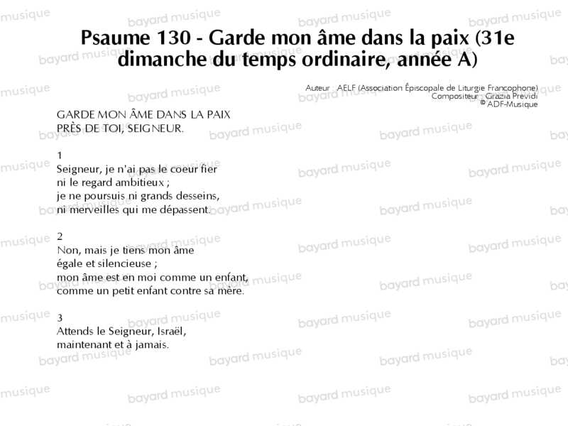 83. Psaume 130 - Garde mon âme dans la paix (31e dimanche du temps ordinaire, année A)