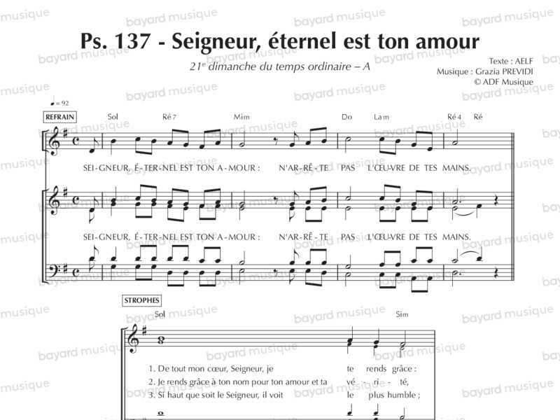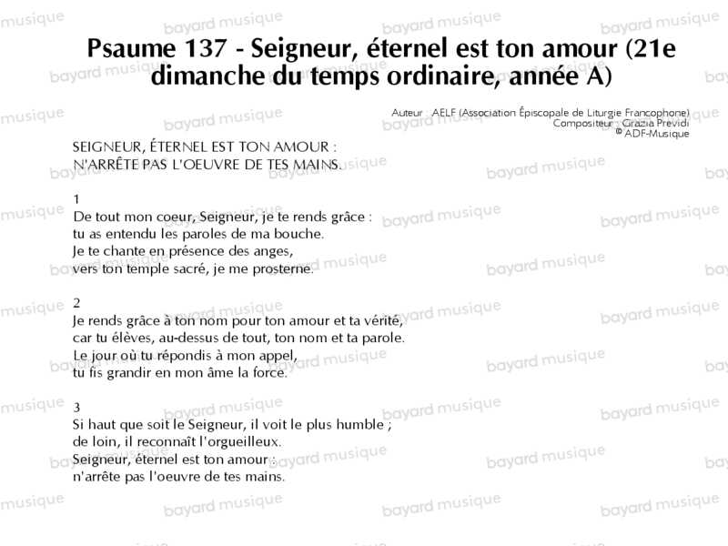 71. Psaume 137 - Seigneur, éternel est ton amour (21e dimanche du temps ordinaire, année A)
