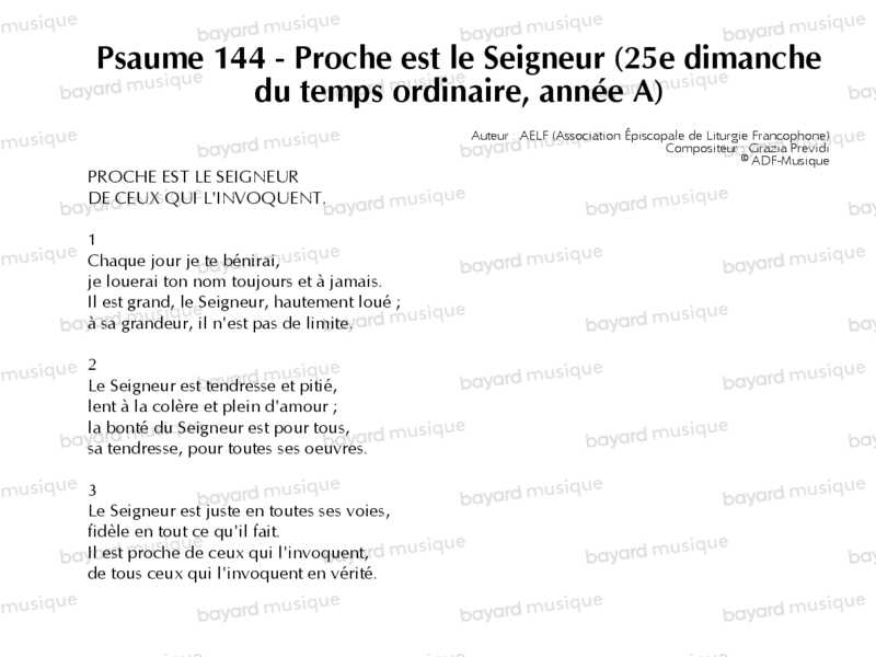 Psaume 144 - Proche est le Seigneur (25e dimanche du temps ordinaire, année A)