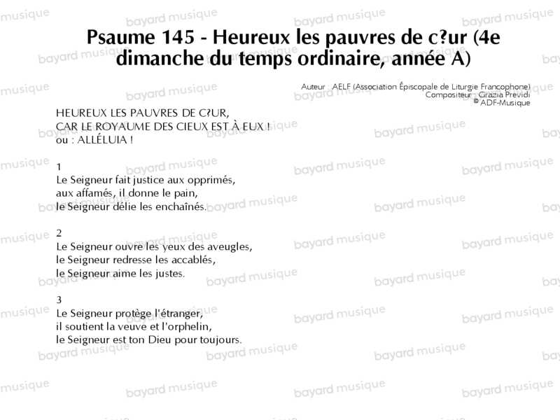 Psaume 145 - Heureux les pauvres de cœur (4e dimanche du temps ordinaire, année A)