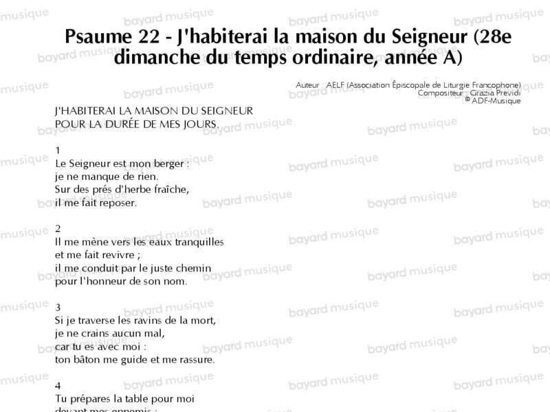 Psaume 22 - J'habiterai la maison du Seigneur (28e dimanche du temps ordinaire, année A)