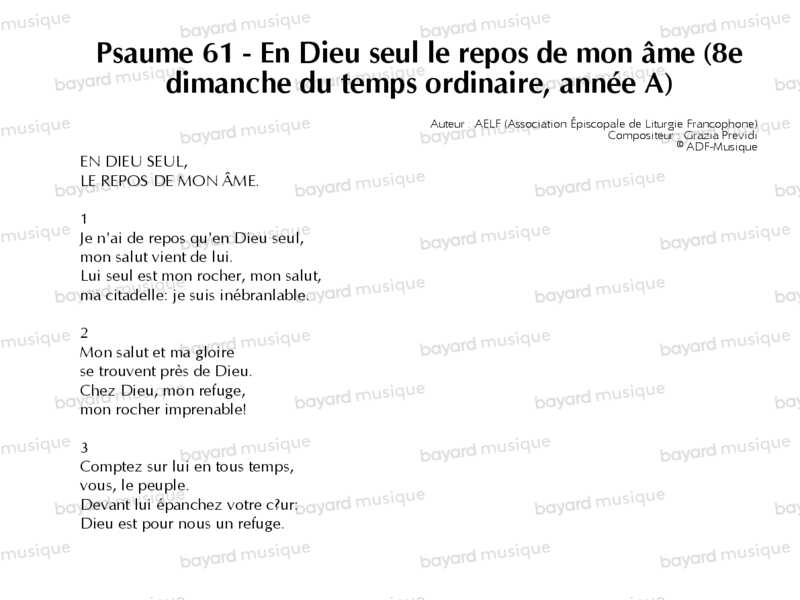 20. Psaume 61 - En Dieu seul le repos de mon âme (8e dimanche du temps ordinaire, année A)